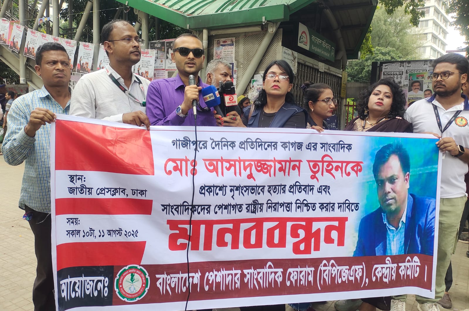 সাংবাদিক তুহিন হত্যায় বিচার দাবিতে প্রেসক্লাবে বিপিজেএফের মানববন্ধন
