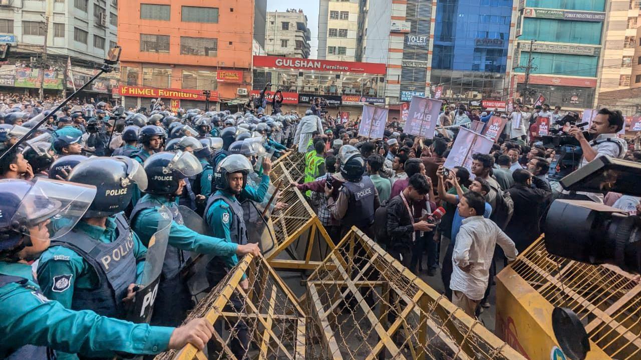 জুলাই ঐক্যের ডাকে রাজধানীতে ঘোষিত ‘মার্চ টু ইন্ডিয়ান হাই কমিশন’ কর্মসূচি বুধবার বিকালে বাড্ডায় আটকে দেয় পুলিশ। ভারতীয় হাই কমিশনের