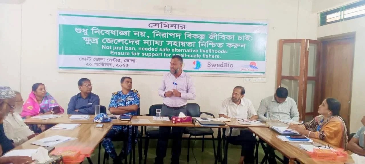 ‘অস্থায়ী সহায়তার বাইরে ছোট মাপের জেলেদের নিরাপদ জীবিকা নিশ্চিত করতে টেকসই জীবিকা ও দক্ষতা উন্নয়নই মূল চাবিকাঠি’ শীর্ষক এই সেমিনারটি অনুষ্ঠিত হয় কোস্ট ফাউন্ডেশনের ভোলা সেন্টারে।