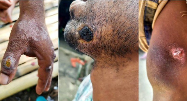 শিল্পী, মামুন ও খোরশেদ নামে তিনজনের ত্বকে জবাইয়ের অল্প কিছুদিন পরই ঘা দেখা দেয়। তারা রংপুর মেডিকেল কলেজ হাসপাতালে না গিয়ে স্থানীয় স্বাস্থ্য কমপ্লেক্সে চিকিৎসা নেন এবং পরে বাড়ি ফিরে যান।