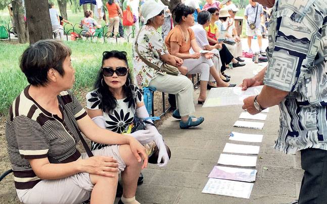 চংকিংয়ের পিপলস পার্কে এত ভিড় হয় যে প্রবীণরা হাঁটাচলার জায়গা খুঁজে পান না। বাবা-মায়েরা সন্তানদের জীবনী হাতে ধরে রাখেন, কেউ কেউ খোলা ছাতায় প্রোফাইল টাঙিয়ে রাখেন যেন প্রদর্শনী স্টল। সারি সারি লেমিনেটেড কাগজ মাটিতে বা দেওয়ালে লাগানো থাকে।