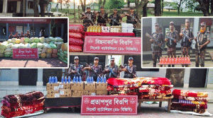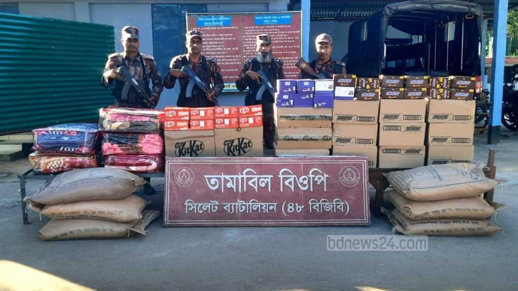 বর্ডার গার্ড বাংলাদেশ (বিজিবি) বৃহস্পতিবার প্রাতাপুর, শ্রীপুর, তামাবিল, বিচনাকান্দি, কলাইরাগ ও বাংলাবাজার সীমান্ত এলাকায় একাধিক অভিযান চালায়। এসব অভিযানে বিভিন্ন ভারতীয় পণ্যসহ একাধিক চোরাচালান সামগ্রী জব্দ করা হয়।