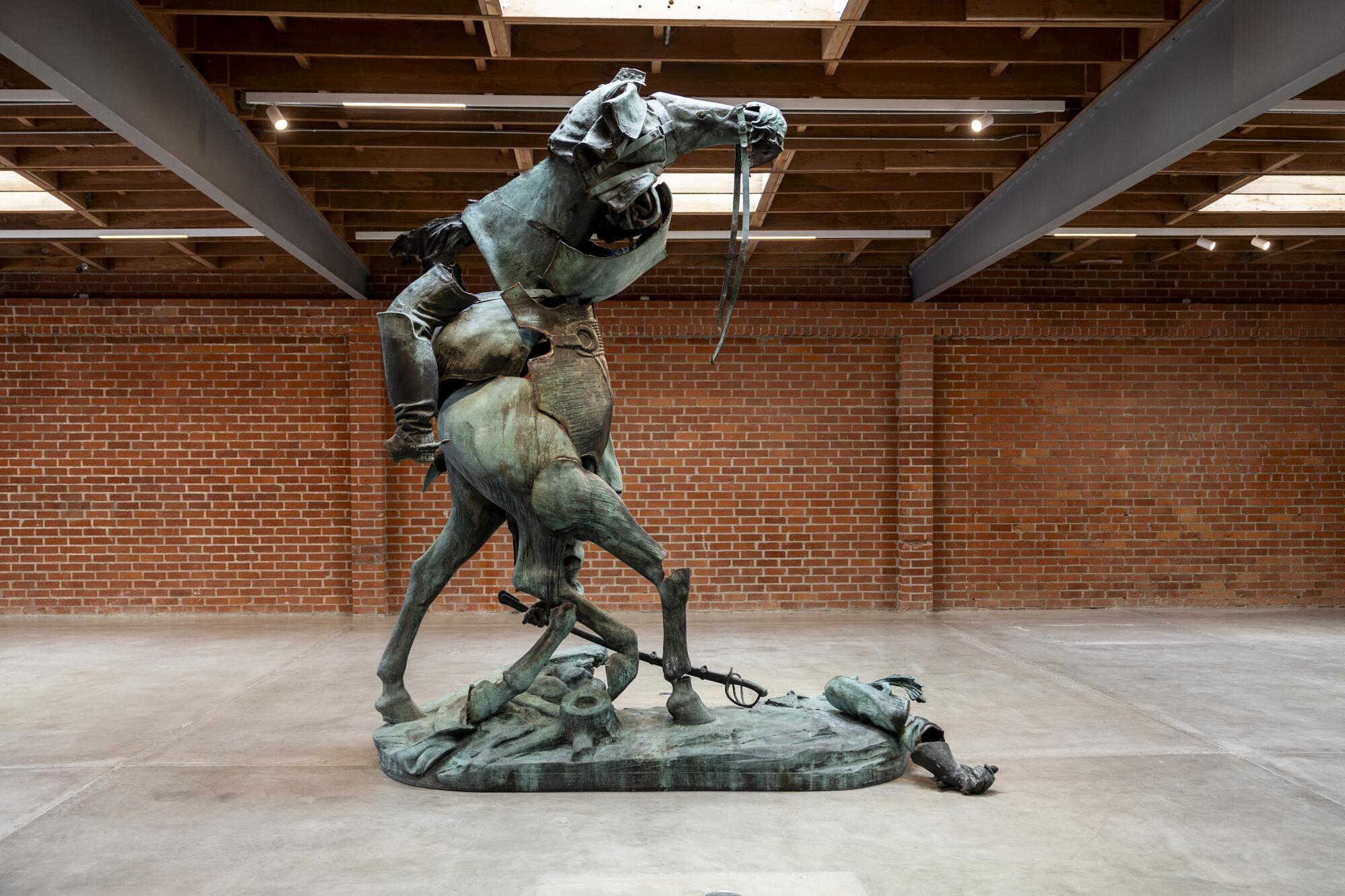 লস অ্যাঞ্জেলেসে অনুষ্ঠিত “মনুমেন্টস” প্রদর্শনী আমেরিকার ইতিহাসে এক বিরল সাহসী প্রয়াস। এখানে একসঙ্গে স্থান পেয়েছে উনিশ শতকের শেষভাগের কনফেডারেট ভাস্কর্য এবং সমসাময়িক কৃষ্ণাঙ্গ শিল্পীদের কাজ। ধ্বংসপ্রাপ্ত, রঙে দাগ পড়া বা ভেঙে যাওয়া এই প্রতীকগুলো—যেগুলো একসময় দক্ষিণের দাসপ্রথাকে মহিমান্বিত করেছিল—এখন নতুন অর্থে ফিরে এসেছে।