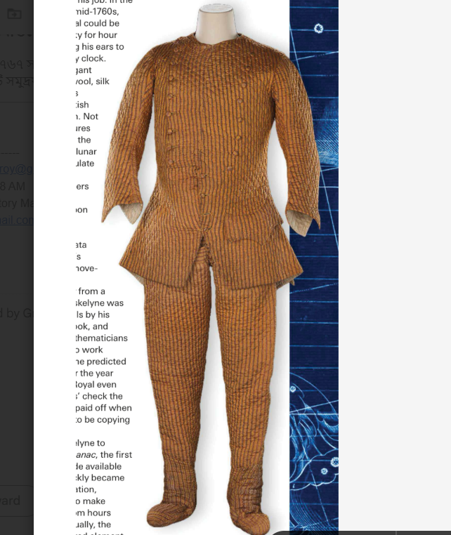 নেভিল মাসকেলাইন ছিলেন একজন অসাধারণ পরিশ্রমী ও নিবেদিত মানুষ। ১৭৬০-এর দশকের মাঝামাঝি সময়ে, গভীর রাতে তিনি ঘণ্টার পর ঘণ্টা আকাশের দিকে তাকিয়ে থাকতেন, এমনকি একটি কাছাকাছি ঘড়ির টিকটিক শব্দ শোনার চেষ্টা করতেন। নিজেকে ঠান্ডা থেকে রক্ষা করতে, তিনি উল, সিল্ক এবং লিনেন দিয়ে তৈরি অত্যাধুনিক একটি প্যাডেড স্যুট পরতেন, যা ব্রিটিশ শীতে তার পরিশ্রম সহ্য করার জন্য যথেষ্ট ছিল।