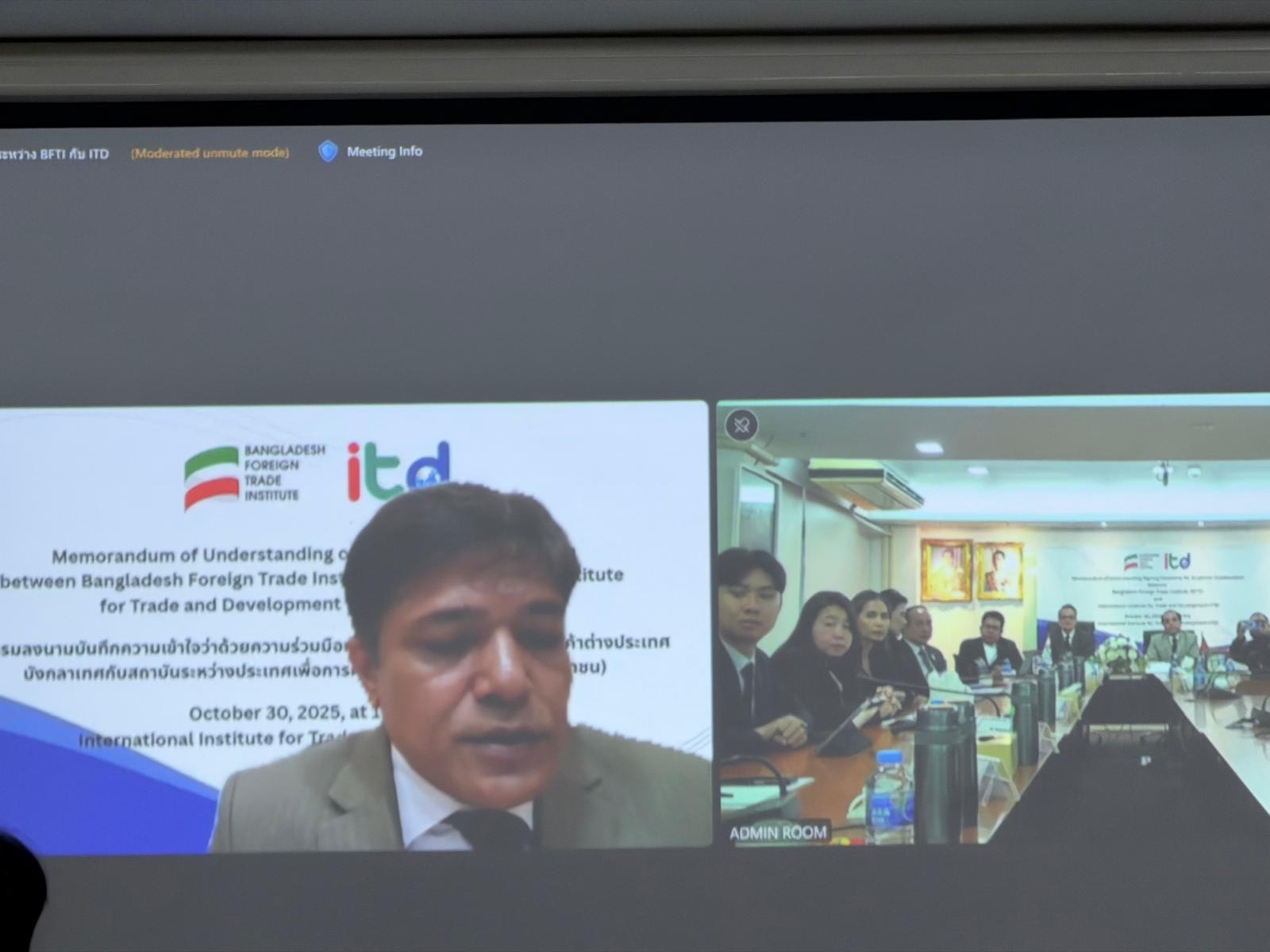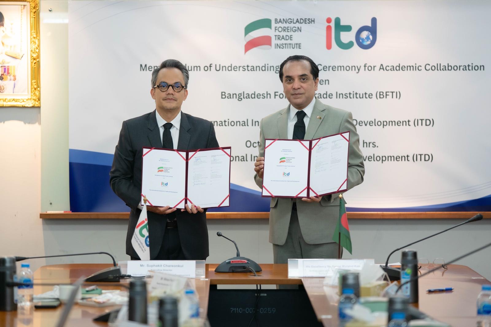 বাংলাদেশ ফরেন ট্রেড ইনস্টিটিউট (বিএফটিআই) এবং থাইল্যান্ডের ইন্টারন্যাশনাল ইনস্টিটিউট ফর ট্রেড অ্যান্ড ডেভেলপমেন্ট (আইটিডি)-এর মধ্যে একটি সমঝোতা স্মারক (MoU) স্বাক্ষরিত হয়েছে।