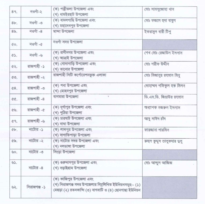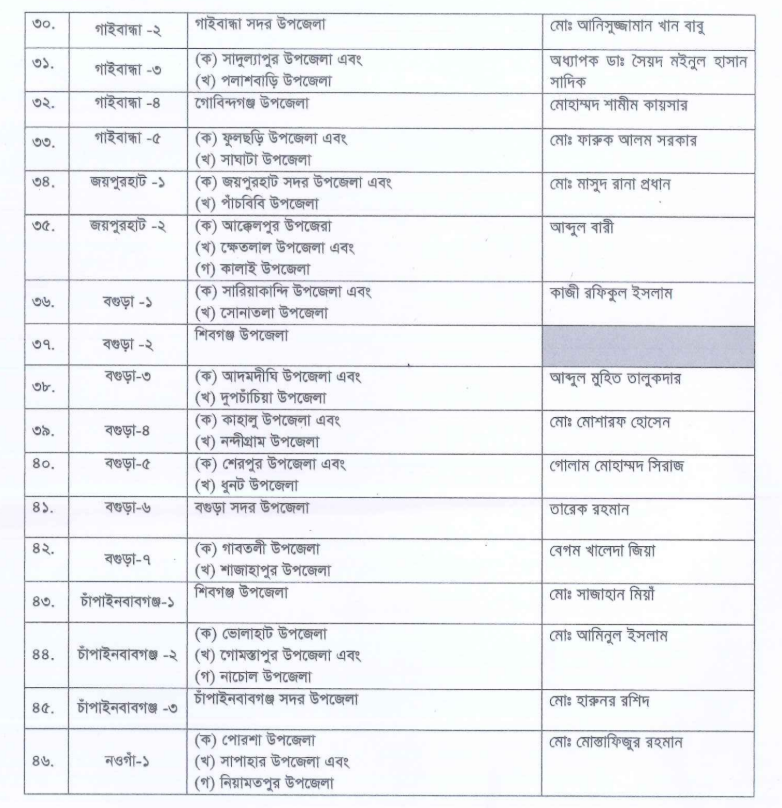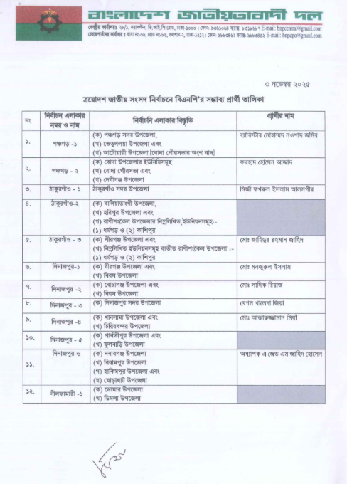 বিএনপির জেনারেল সেক্রেটারি মির্জা ফখরুল ইসলাম আলমগীর স্বাক্ষরিত ওই প্রার্থী তালিকা।