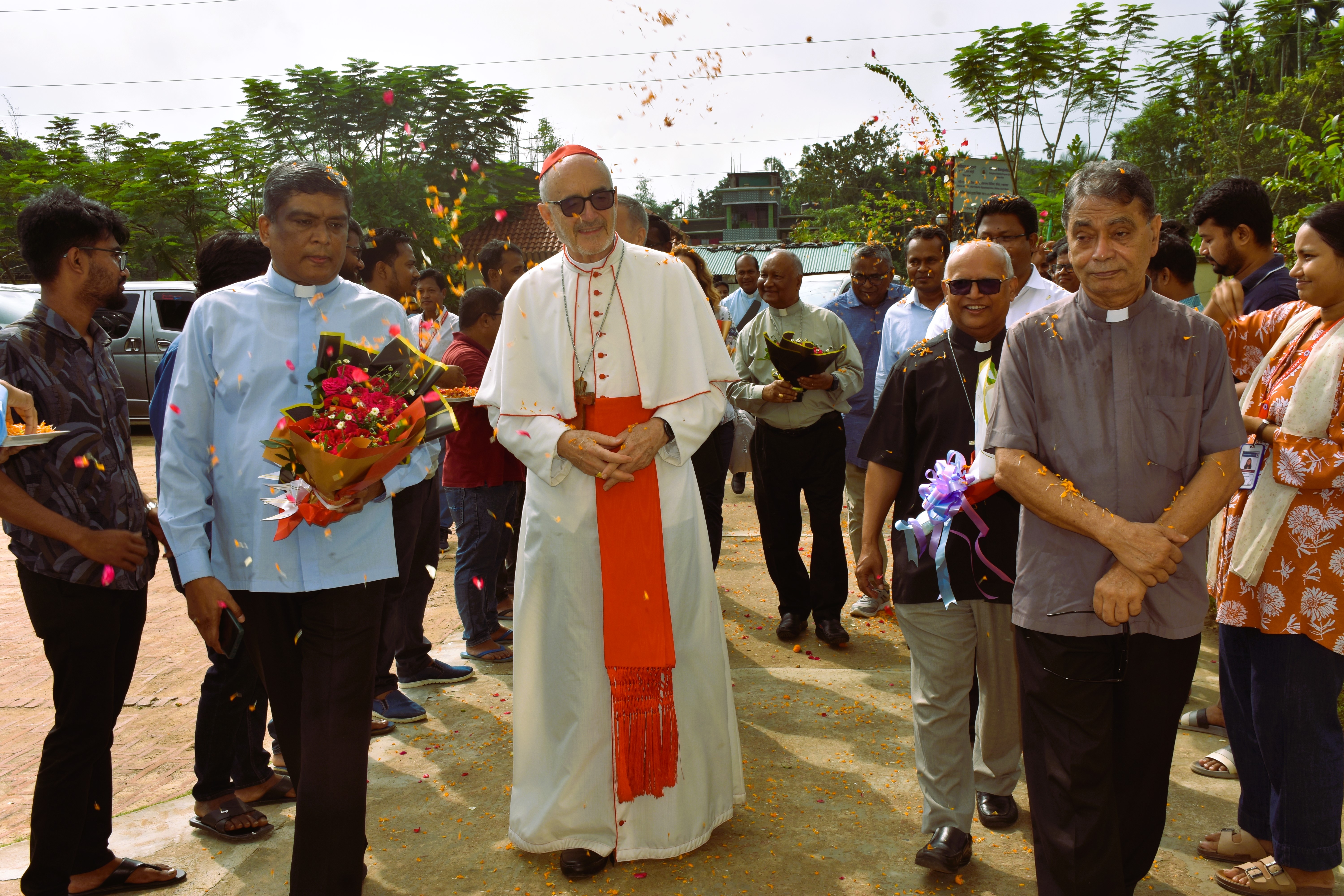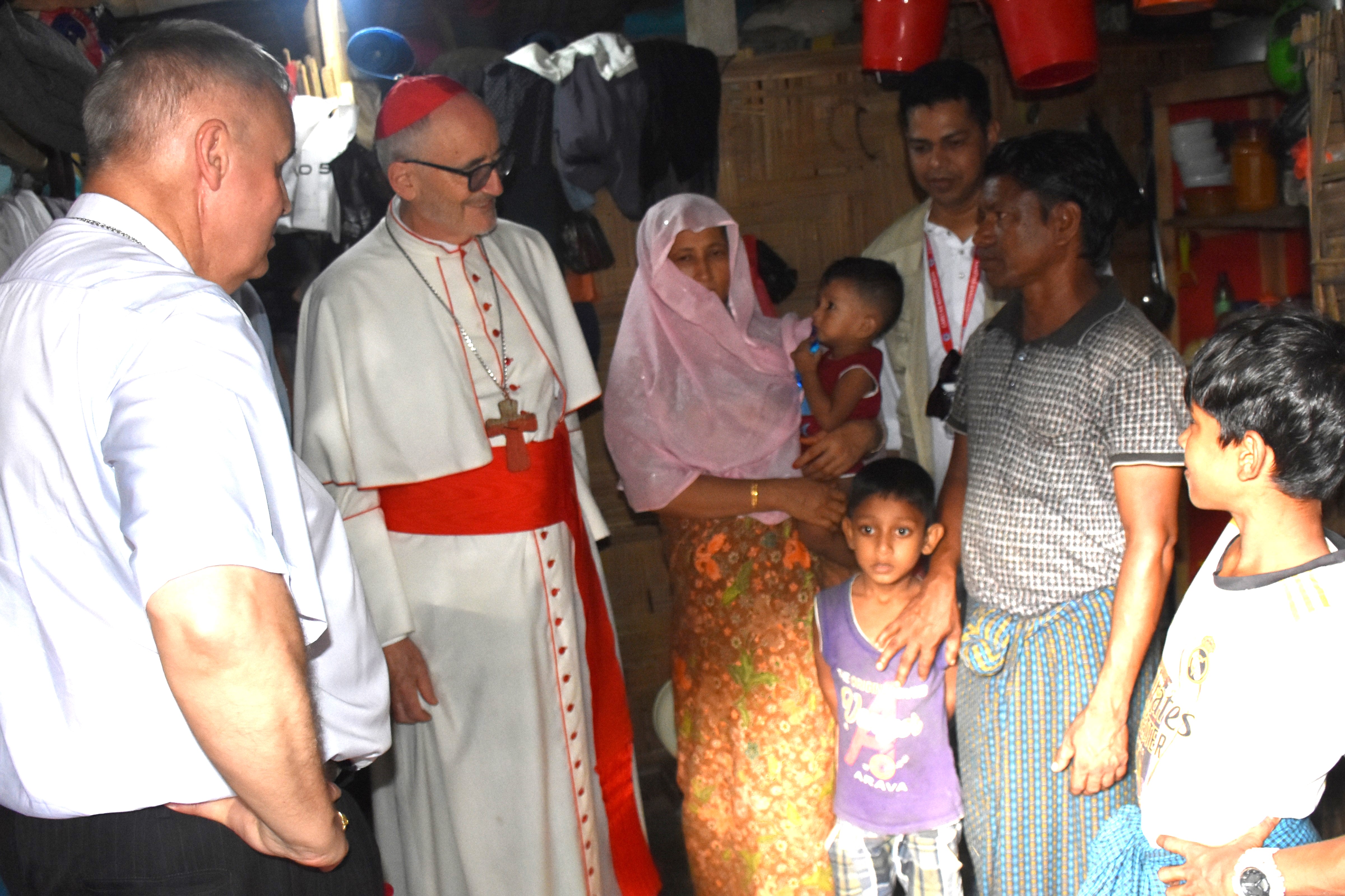 তার সঙ্গে ছিলেন ফাদার জোসেফ সাভারিমাথু (কার্ডিনালের সচিব), ফ্রানচেসকা ডোনা (এশিয়া মূলভূখণ্ডের আঞ্চলিক সমন্বয়কারী), আর্চবিশপ কেভিন স্টুয়ার্ট র্যান্ডাল (বাংলাদেশে অ্যাপোস্টলিক নানসিও), আর্চবিশপ লরেন্স সুব্রত হাউলাডার (চট্টগ্রামের আর্চবিশপ), বিশপ গেরভাস রোজারিও (এপিস্কোপাল কমিশন ফর জাস্টিস অ্যান্ড পিসের চেয়ারম্যান), এবং ফাদার লিটন গোমেস (কমিশনের সচিব)। তাদের উষ্ণ অভ্যর্থনা জানান কারিতাস বাংলাদেশের নির্বাহী পরিচালক ও জরুরি সহায়তা কর্মসূচির প্রকল্প পরিচালক মি. দাউদ জিবন দাস এবং ইআরপি-র জ্যেষ্ঠ কর্মকর্তারা।