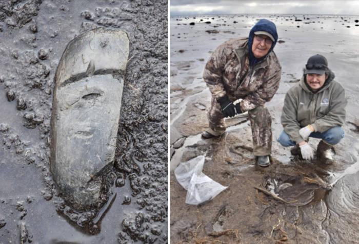 আলাস্কার পশ্চিম উপকূলে অবস্থিত মাছধরা গ্রাম কুইনহাগাক। গত মাসে টাইফুন হালং আঘাত হানার পর, এখানকার বাসিন্দা জিমি জোন্স সকালে সমুদ্রতটে ভেসে আসা কাঠ সংগ্রহ করছিলেন। হঠাৎ এক লগ তুলতে গিয়ে তিনি দেখেন বালুর নিচে দেখা যাচ্ছিল এক মুখ—এক মুহূর্তের জন্য তিনি ভাবেন, হয়তো কোনো মৃতদেহ। কিন্তু কাছে গিয়ে বোঝা গেল, এটি কাঠের তৈরি একটি মুখোশ, যার ওপর ক্ষীণ রঙের চিহ্ন এখনো রয়ে গেছে।
