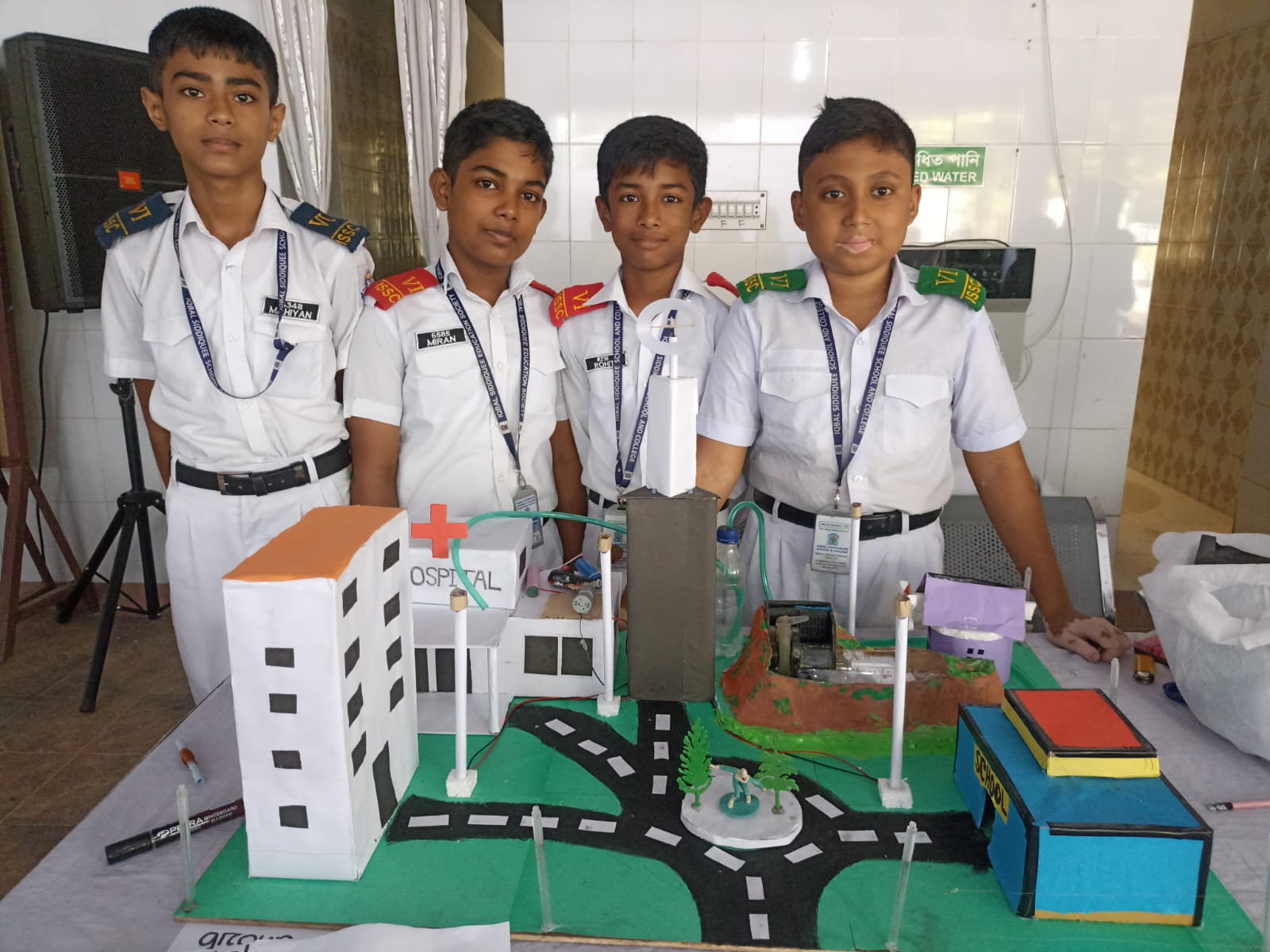 তৃতীয় হয় চতুর্থ শ্রেণির শিক্ষার্থী লোকনাথ মন্ডলের নেতৃত্বে ‘Newton’ দলের ‘Modern City’ প্রজেক্ট।