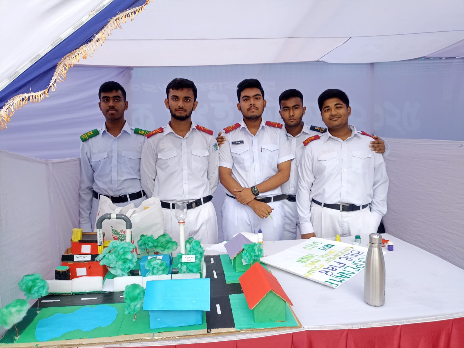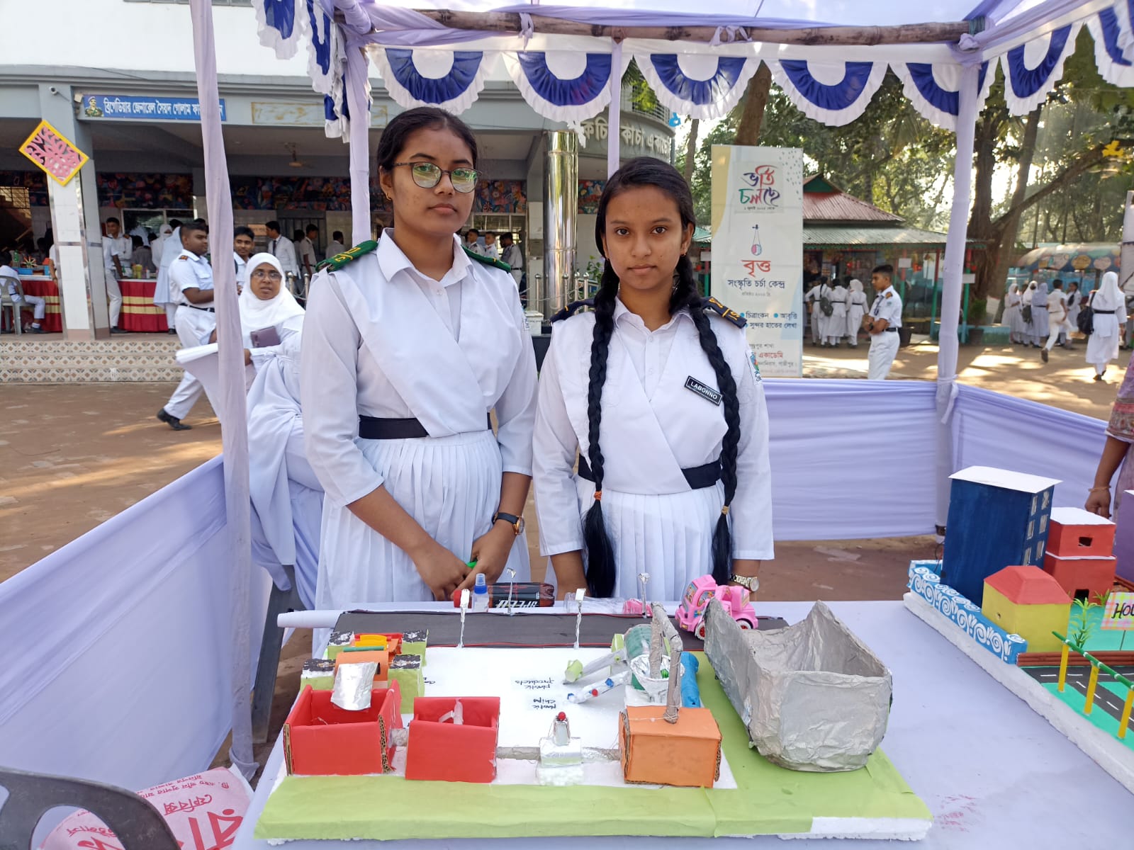 প্রথম স্থান অর্জন করে একাদশ শ্রেণির শিক্ষার্থী সাকিব আল মাহমুদের নেতৃত্বে ‘Mission Hexa’ দলের ‘Smart Village and Safety Device’।
