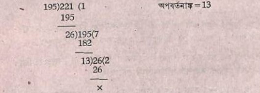 ন্যাসঃ। ভাজ্যঃ ২২১। হারঃ ১৯৫। ক্ষেপঃ ৬৫। অত্র পরস্পর ভাজিত যোর্তাজ্যভাজকয়োঃ শেষম্। ১৩; অনেন ভাজ্যহারক্ষেপা অপবত্তিতা জাতা ভাজ্যঃ।
