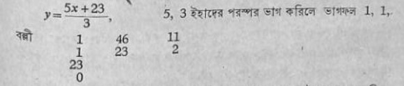 উদাহরণ: 5’কে যে সংখ্যাদ্বারা গুণ করিয়া 23 যোগ বা বিয়োগ করতঃ 3 দ্বারা ভাগ করিলে নিঃশেষ হয় সেই সংখ্যা বল।