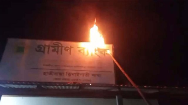 শেরপুরের ঝিনাইগাতীর হাতীবান্ধা এলাকায় গ্রামীণ ব্যাংকের একটি শাখায় মুখোশধারী দুর্বৃত্তরা আগুন দেয়। অগ্নিসংযোগের ভিডিও সামাজিক যোগাযোগমাধ্যমে দ্রুত ছড়িয়ে পড়েছে।