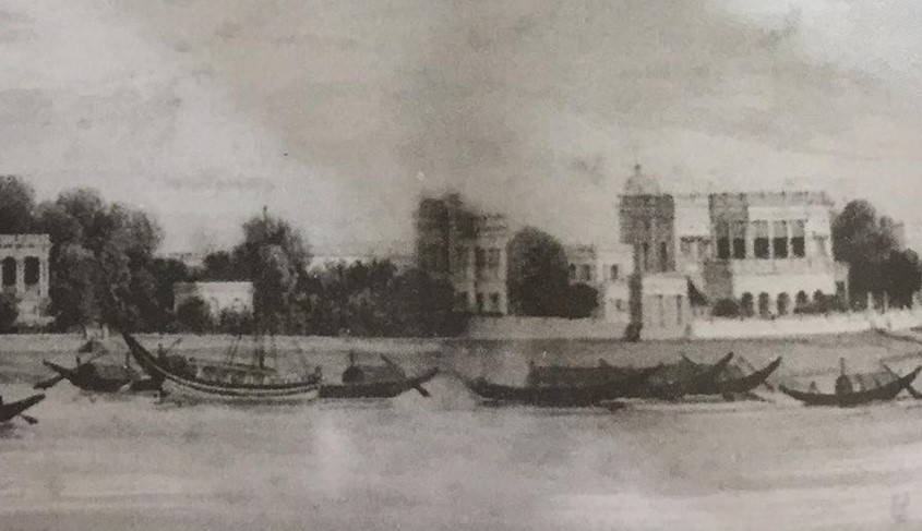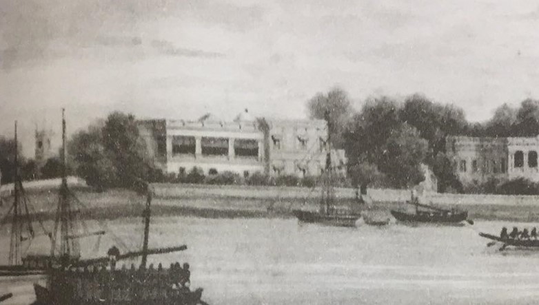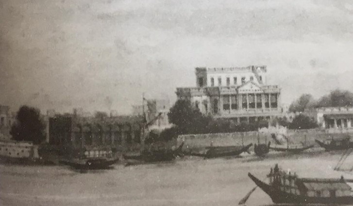 সুপারিনটেনডেন্ট সার্জন ড. ল্যাম্বের বাড়ি; নীলকর ও জমিদার ই কে হিউমের বাড়ি; দূরে সেন্ট থমাসের গির্জা