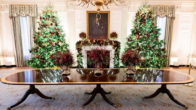 বেশিরভাগ সজ্জাই হোয়াইট হাউসের ইতিহাস এবং ঐতিহ্যের সঙ্গে সম্পর্কিত, বিশেষ করে একটি বড় অংশ ক্রিসমাস ক্রেসেসের মাধ্যমে, যেখানে যিশু, মেরি এবং জোসেফের একটি নিটিভিটি দৃশ্য প্রদর্শিত হচ্ছে।