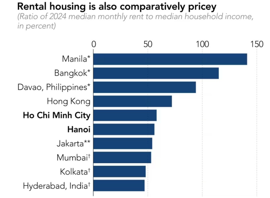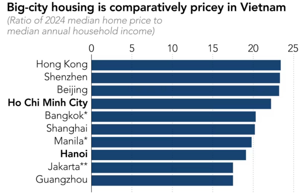 ওয়াশিংটনভিত্তিক আরবান ল্যান্ড ইনস্টিটিউট (ULI)–এর হিসাব অনুযায়ী আয়–দামের অনুপাতে হ্যানয় ও হো চি মিন সিটি এখন সিঙ্গাপুর, টোকিও কিংবা সিউলের চেয়েও ব্যয়বহুল।