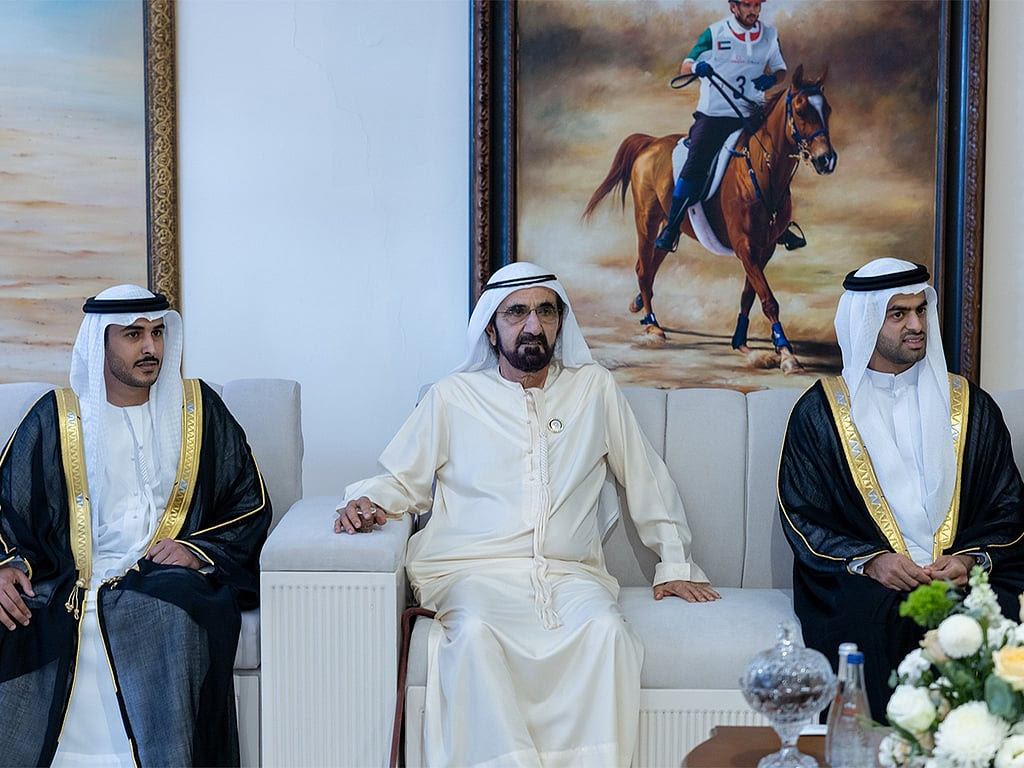 দুবাইয়ে আয়োজিত এই সংবর্ধনা ছিল চার নবদম্পতিকে শুভেচ্ছা জানানোর বিশেষ আয়োজন। শেখ মোহাম্মদের সঙ্গে উপস্থিত ছিলেন দুবাইয়ের ক্রাউন প্রিন্স শেখ হামদান এবং দুবাইয়ের প্রথম উপ-শাসক শেখ মাকতুমসহ আরও বহু বিশিষ্ট ব্যক্তি।