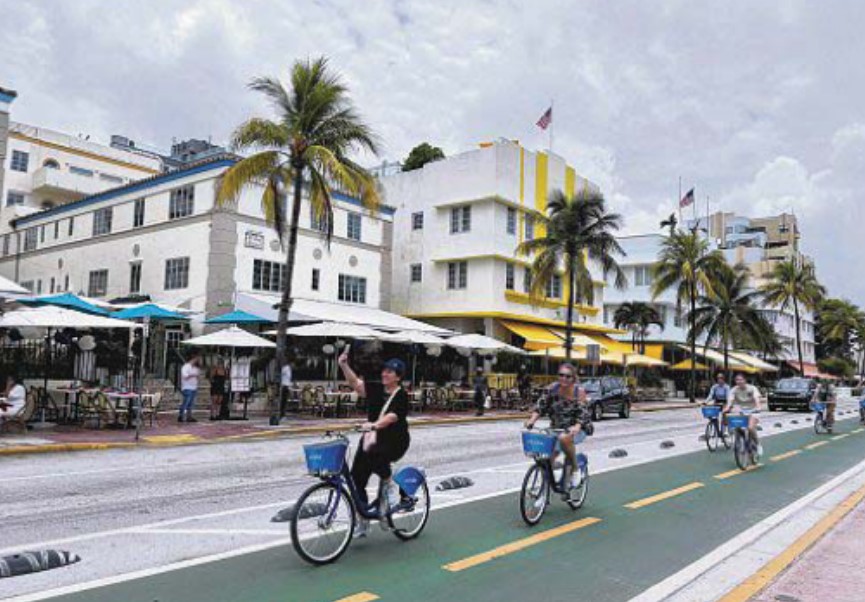 সূর্যের আলো পড়লে কাচ আর ক্রোমের জ্যামিতিক নকশা ঝলসে ওঠে। ক্যাফে থেকে ভেসে আসে লাতিন সুর, পাশ দিয়ে ছুটে যায় রঙিন কনভার্টিবল। আরামদায়ক কিন্তু স্টাইলিশ পোশাকে স্থানীয়রা স্কেট আর সাইকেলে এগিয়ে যায়, সঙ্গে দৌড়বিদদের টানটান শরীর। বছরজুড়ে উষ্ণ আবহাওয়া আর এই দৃশ্যই সাউথ বিচকে বানিয়েছে চিরসবুজ আকর্ষণ।