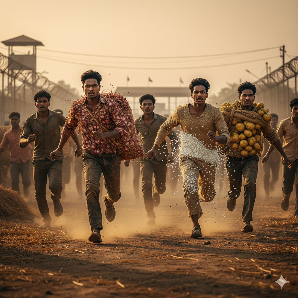 কামাল আহমদের চক্ষু আবারও মুদিয়া গেল—তিনি দেখিতেছেন, নবাগত মেদভূড়ির শরীর লইয়া একশ কেজির চাউলের বস্তা পিঠে লইয়া একইভাবে আরেক তরুণ বেনাপোল বন্দর হইতে দৌড়াইতেছে। আবার শরীর শীর্ণকায় হইলেও একটি তরুণী জিরার বস্তা কাঁধে লইয়াছেন—তাহার শরীর ও রঙ কেমন যেন জিরার সঙ্গে মিশিয়া যাইতেছে।
