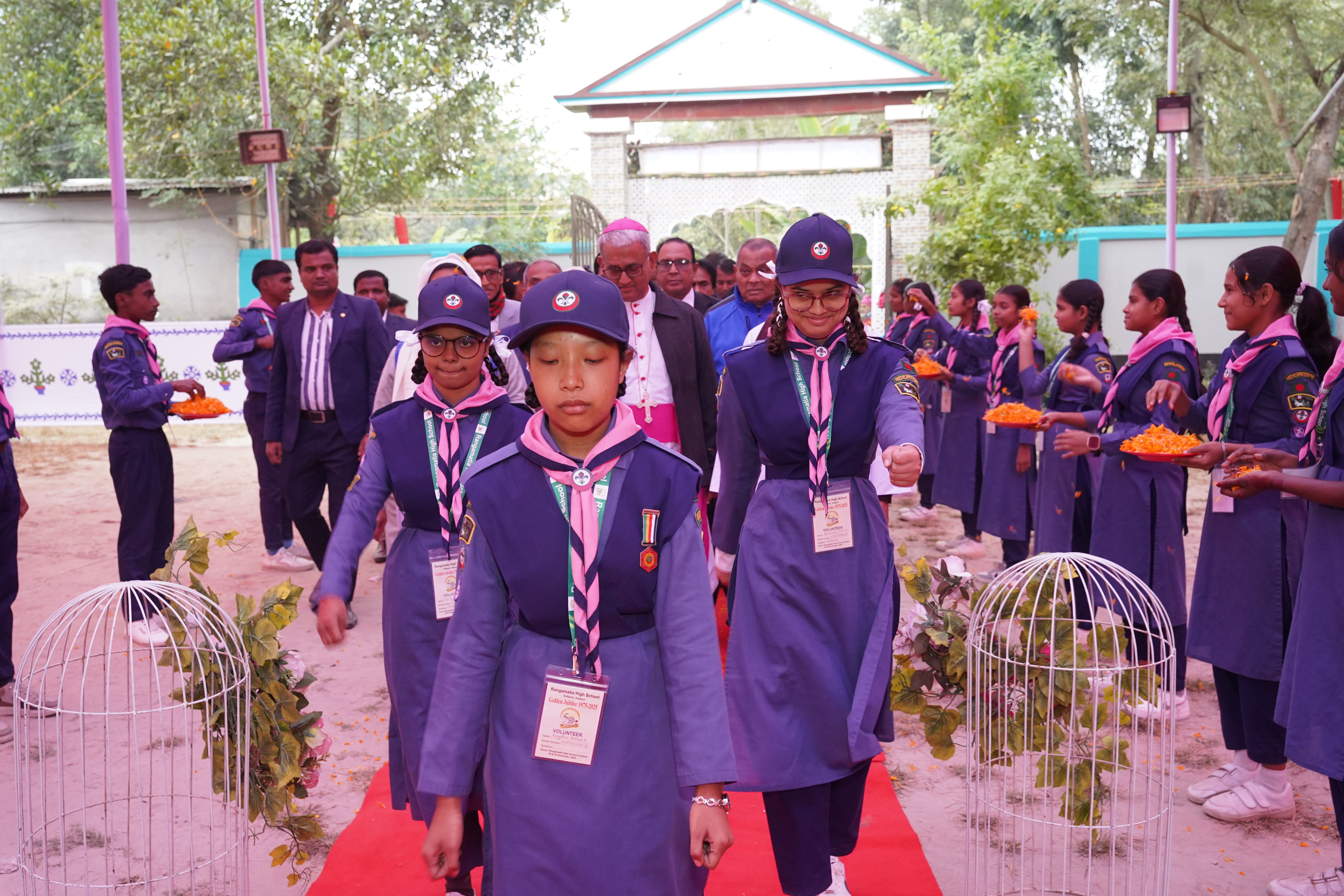 স্বাগত বক্তব্যে প্রধান শিক্ষিকা সিস্টার মেরি স্কলাস্টিকা পালমা গত পঞ্চাশ বছরে বিদ্যালয়টিকে টিকিয়ে রাখা ও এগিয়ে নেওয়ার সঙ্গে যুক্ত সবার প্রতি কৃতজ্ঞতা জানান। তিনি বলেন, এই বিদ্যালয় এলাকাবাসীর উদ্যোগেই গড়ে উঠেছে এবং তাদের সহায়তায় আজও পরিচালিত হচ্ছে। সুবর্ণজয়ন্তী বিদ্যালয়ের জন্য একটি গর্বের মাইলফলক।