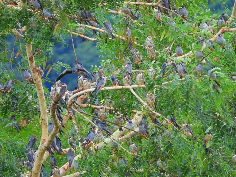 খালি চোখে দূরের গাছগুলোকে মনে হয় ফ্যাকাশে রঙের ফুলে ভরা। হঠাৎ যেন কোনো সংকেতে হাজার হাজার আমুর ফ্যালকন একসঙ্গে উড়াল দেয়। একযোগে ডানার ঝাপটায় সৃষ্টি হয় বজ্রগর্জনের মতো শব্দ। আকাশ অন্ধকার হয়ে আসে, আর সেই দৃশ্য দেখে অভিভূত হয়ে পড়েন পাখিপ্রেমীরা।