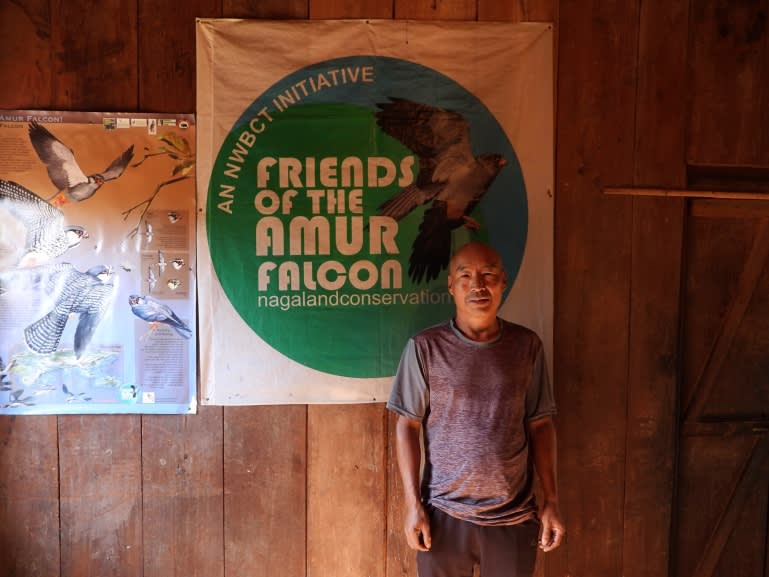 উত্তর-পূর্ব ভারতের নাগাল্যান্ড রাজ্যের আরি ওল্ড গ্রামের কাছের এক জলাভূমিতে ছোট কাঠের নৌকা চালাচ্ছেন পাখি পর্যবেক্ষণ গাইড জানবেমো ওডিউ। তাঁর সঙ্গে আছেন ইউরোপ থেকে আসা দুজন পাখিপ্রেমী, যাঁরা দেখতে এসেছেন পরিযায়ী আমুর ফ্যালকন।