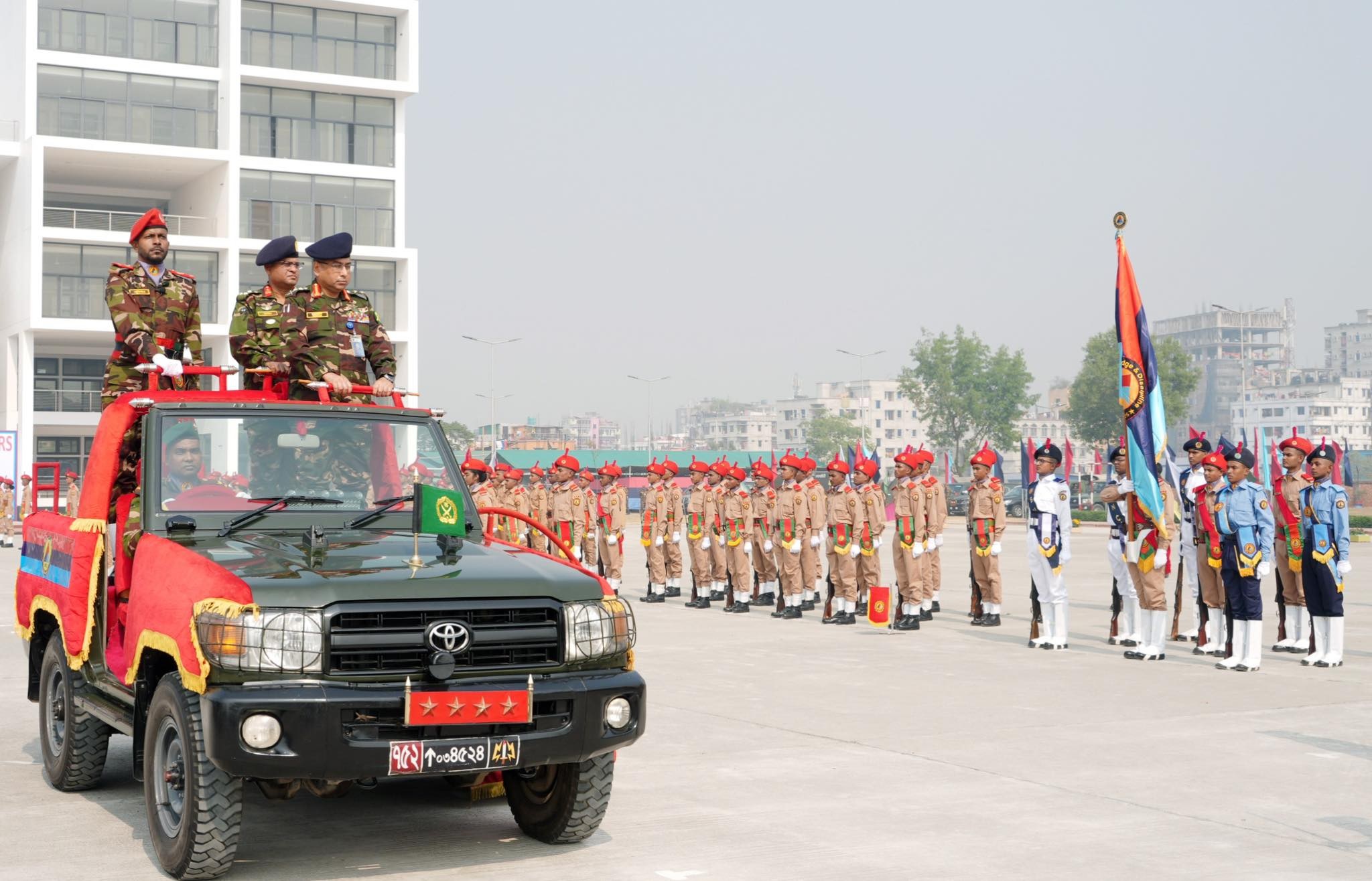 (১৪ জানুয়ারি ২০২৬) বুধবার সাভারের বাইপাইলস্থ বাংলাদেশ ন্যাশনাল ক্যাডেট কোর (বিএনসিসি) অধিদপ্তরের ট্রেনিং একাডেমিতে বার্ষিক কেন্দ্রীয় ক্যাম্পিং—২০২৫/২৬ এর সমাপনী কুচকাওয়াজ অনুষ্ঠিত হয়। উক্ত অনুষ্ঠানে সেনাবাহিনী প্রধান জেনারেল ওয়াকার—উজ—জামান, এসবিপি, ওএসপি, এসজিপি, পিএসসি প্রধান অতিথি হিসেবে উপস্থিত থেকে কুচকাওয়াজ পরিদর্শন ও সালাম গ্রহণ করেন।