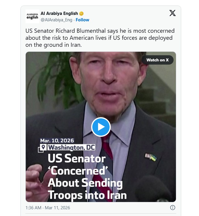 এ ধরনের একটি গোপন বৈঠকে অংশ নেওয়ার পর মার্কিন সিনেটর রিচার্ড ব্লুমেনথাল সতর্ক করে বলেন, পরিস্থিতি আরও উত্তপ্ত হলে শেষ পর্যন্ত স্থল অভিযানের চাপ তৈরি হতে পারে। নীতিনির্ধারকদের মধ্যে এমন আশঙ্কা রয়েছে যে বিমান হামলা যদি সরকারকে দুর্বল করতে না পারে, তবে যুদ্ধ ধীরে ধীরে আরও গভীর সামরিক সম্পৃক্ততার দিকে গড়াতে পারে।