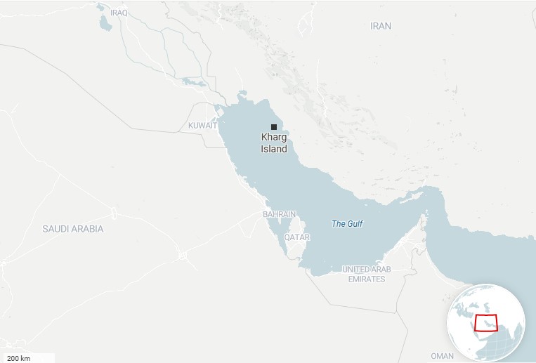 ইরানের মূল ভূখণ্ড থেকে প্রায় ২৮ কিলোমিটার দূরে এবং বুশেহর বন্দর থেকে প্রায় ৫৫ কিলোমিটার উত্তর-পশ্চিমে অবস্থিত খার্গ দ্বীপ। আকারে ছোট হলেও এটি ইরানের অর্থনীতির সবচেয়ে গুরুত্বপূর্ণ জ্বালানি কেন্দ্র।