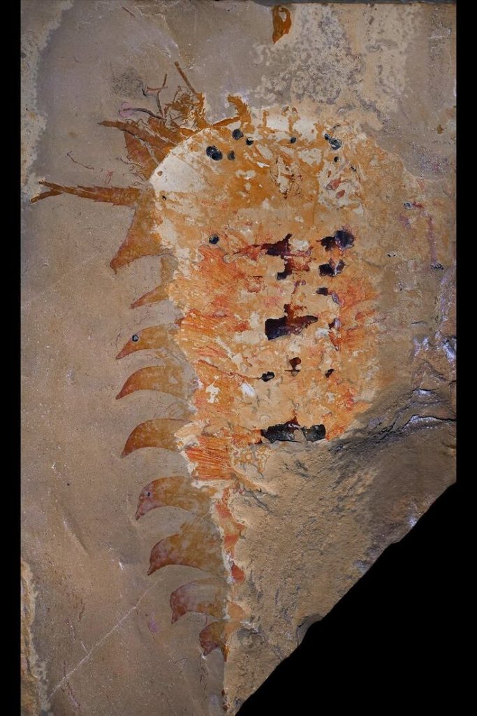 ফসিলের পাথর সরানোর পর দেখা যায় একটি অদ্ভুত প্রাণী। এর মাথার ঢাল, নয়টি দেহ খণ্ড এবং শাখাযুক্ত বিভিন্ন সংযোজন ছিল। সবচেয়ে অদ্ভুত ছিল সামনের জোড়া রঙিন থাবা, যা ট্রিলোবাইটের মতো পাতলা অ্যান্টেনার মতো নয়, বরং বেজির মতো থাবার অনুরূপ।