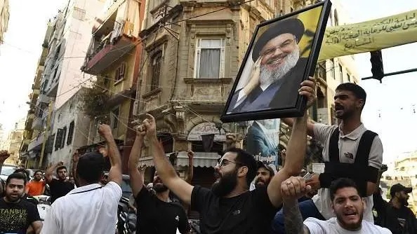 বৈরুতে নাসারুল্লাহর ছবি নিয়ে শ্লোগান