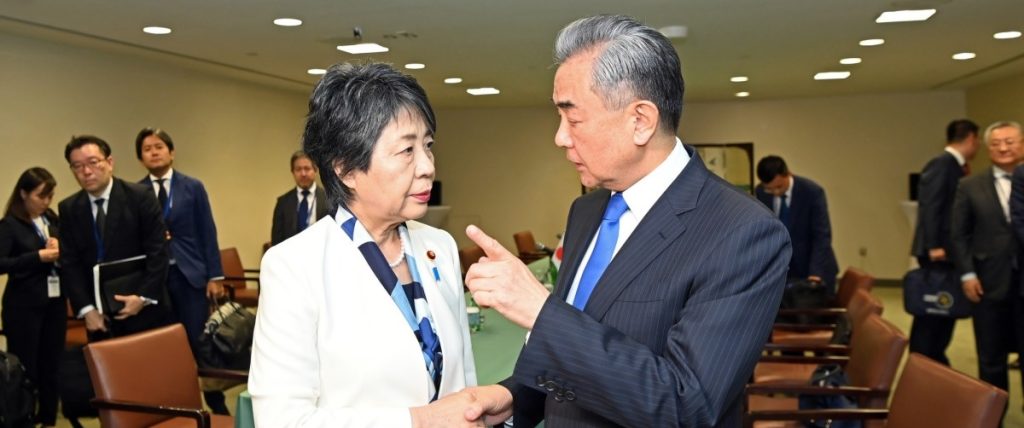 জাপানি পররাষ্ট্র মন্ত্রী ইয়োতো কামিকাওয়া তার চীনা প্রতিপক্ষ ওয়াং ই-এর সাথে গত মাসে নিউ ইয়র্কে বৈঠক করেন।জাপানি পররাষ্ট্র মন্ত্রী ইয়োতো কামিকাওয়া তার চীনা প্রতিপক্ষ ওয়াং ই-এর সাথে গত মাসে নিউ ইয়র্কে বৈঠক করেন।