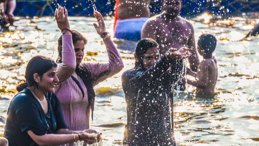 সেখানে আমরা আমাদের পবিত্র স্নান করলাম, যেমন ভারতীয়রা বলে। চারিদিকে ছিলেন দরিদ্র মানুষ, যারা ট্রেন, বাস বা পায়ে দীর্ঘ যাত্রা করে সেই শুভ মুহূর্তে উপস্থিত হয়েছিলেন। পরে, সাদা পাগড়ি পরিহিত রাজস্থানের এক গোষ্ঠী আমাদের হাত ধরে বাচ্চাদের মাথা ঠেলে ধন্যবাদ জানাল।