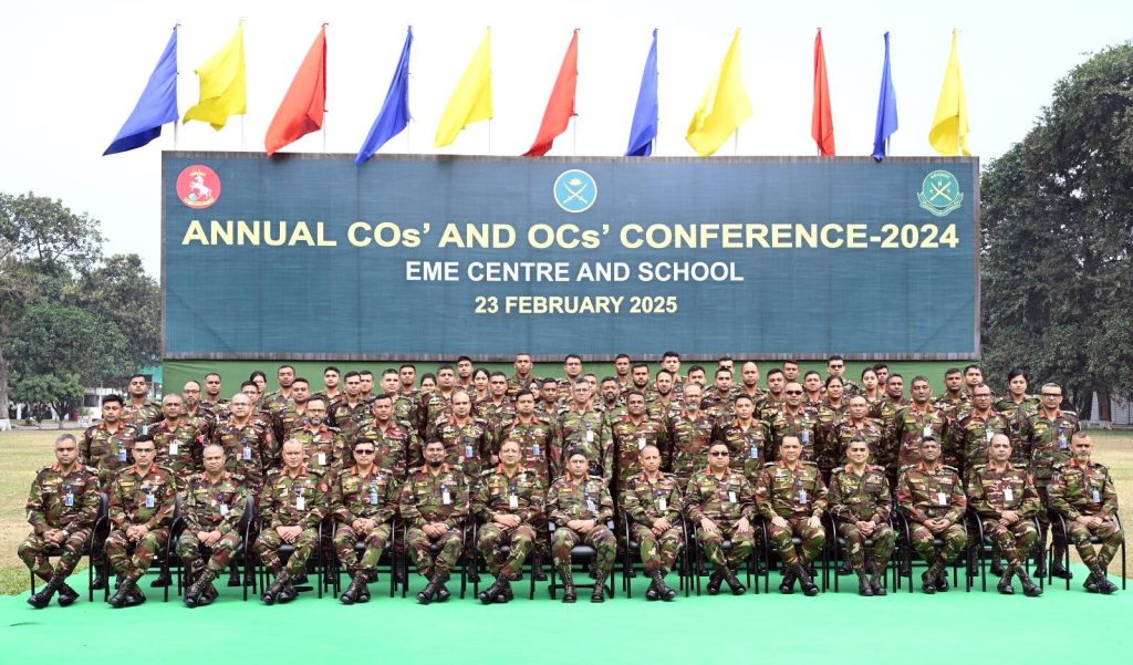 আজ (২৩ ফেব্রুয়ারি ২০২৫) সৈয়দপুর সেনানিবাসস্থ ইএমই সেন্টার এন্ড স্কুল (ইএমইসিএন্ডএস) এ ইএমই কোরের বাৎসরিক অধিনায়ক সম্মেলন-২০২৪ অনুষ্ঠিত হয়। অনুষ্ঠানে প্রধান অতিথি হিসেবে উপস্থিত ছিলেন সম্মানিত সেনাবাহিনী প্রধান জেনারেল ওয়াকার-উজ-জামান, এসবিপি, ওএসপি, এসজিপি, পিএসসি। সেনাবাহিনী প্রধান ইএমই সেন্টার এন্ড স্কুল এ পৌঁছালে তাকে জিওসি, আর্মি ট্রেনিং এন্ড ডকট্রিন কমান্ড; নব নিযুক্ত কর্নেল কমান্ড্যান্ট, ইএমই কোর; জিওসি ও এরিয়া কমান্ডার রংপুর এরিয়া ও কমান্ড্যান্ট ইএমইসিএন্ডএস অভ্যর্থনা জানান।