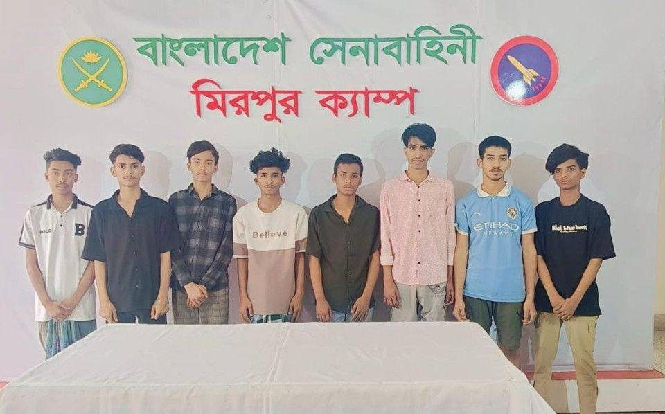 ৬ স্বতন্ত্র এডিএ ব্রিগেড এর অধীনস্থ একটি ইউনিট এর মোতায়েন এলাকায় আটককৃত কিশোর গ্যাং এর সদস্যদের একটি আলোকচিত্র