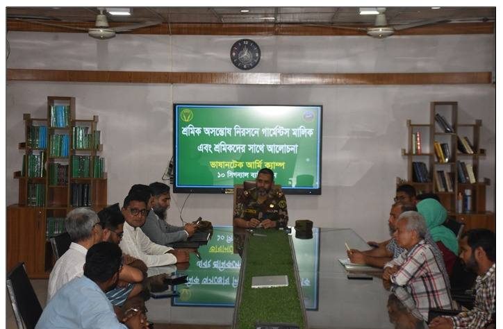 ৮৬ স্বতন্ত্র সিগন্যাল ব্রিগেডে এর অধীনস্থ ইউনিট কর্তৃক ভাষানটেক এলাকার গার্মেন্টস মালিকদের সাথে মতবিনিময় সভা