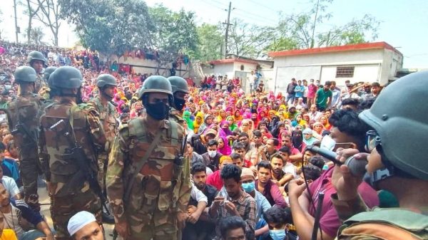 - সেনাবাহিনী হস্তক্ষেপ করে অবরোধ তুলে নিলেও শ্রমিকরা কারখানার সামনে অবস্থান চালিয়ে যান।