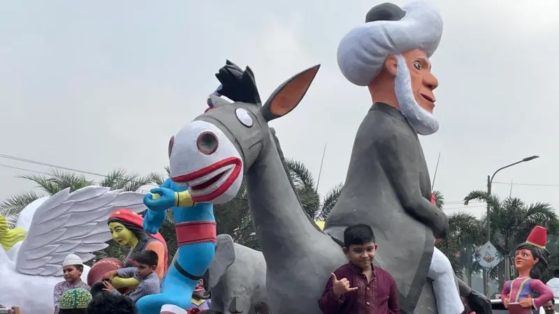 আনন্দ মিছিলে গাধার পিঠে বসে থাকা লোককথার চরিত্র নাসিরুদ্দিন হোজ্জার একটি পাপেট বা প্রতিকৃতিও স্থান পায়।