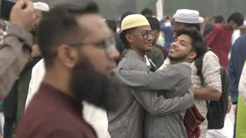 সোমবার সকালে ঢাকার শেরে বাংলা নগরের পুরনো বাণিজ্য মেলার মাঠে ঈদুল ফিতরের প্রধান জামাত অনুষ্ঠিত হয়। জামাত শেষে সেখান থেকেই শুরু হয় বর্ণাঢ্য ঈদ আনন্দ মিছিল।