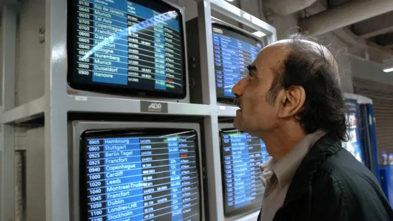 মেহরান কারিমি নাসেরি ২০০৪ সালে বিমানবন্দরের মনিটরে বিমান ওঠানামার শিডিউল দেখছেন