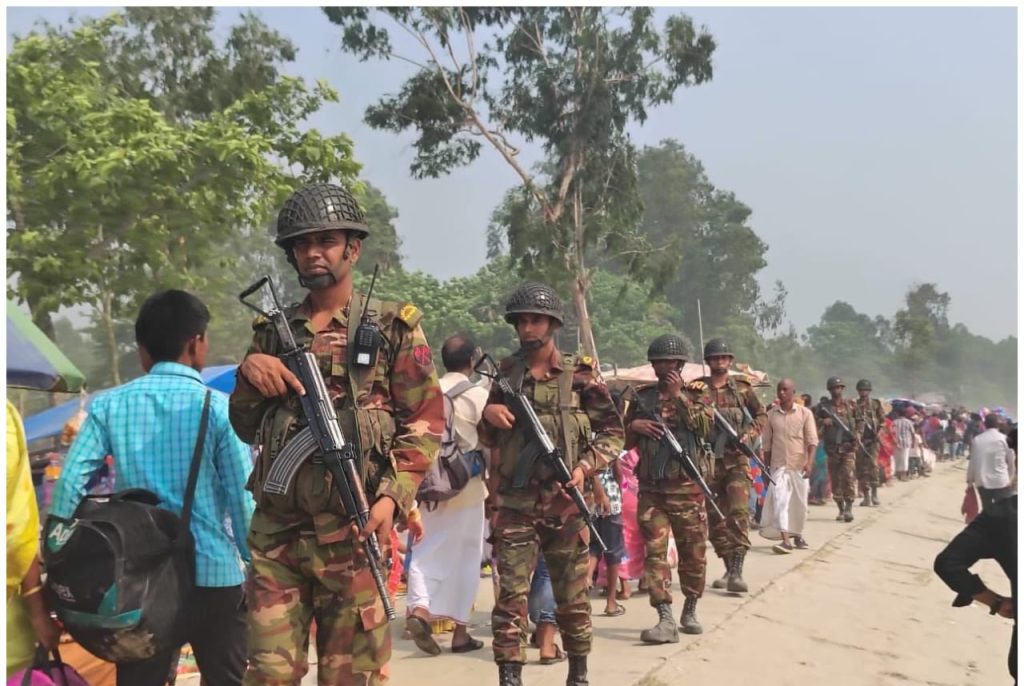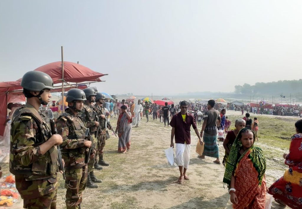 রংপুর অঞ্চলের সেনা সদস্যগণ কর্তৃক কুড়িগ্রাম জেলায় চিলমারী এলাকায় পূণ্যস্নানে আসা ব্যক্তিবর্গদের টহলের মাধ্যমে নিরাপত্তা প্রদান