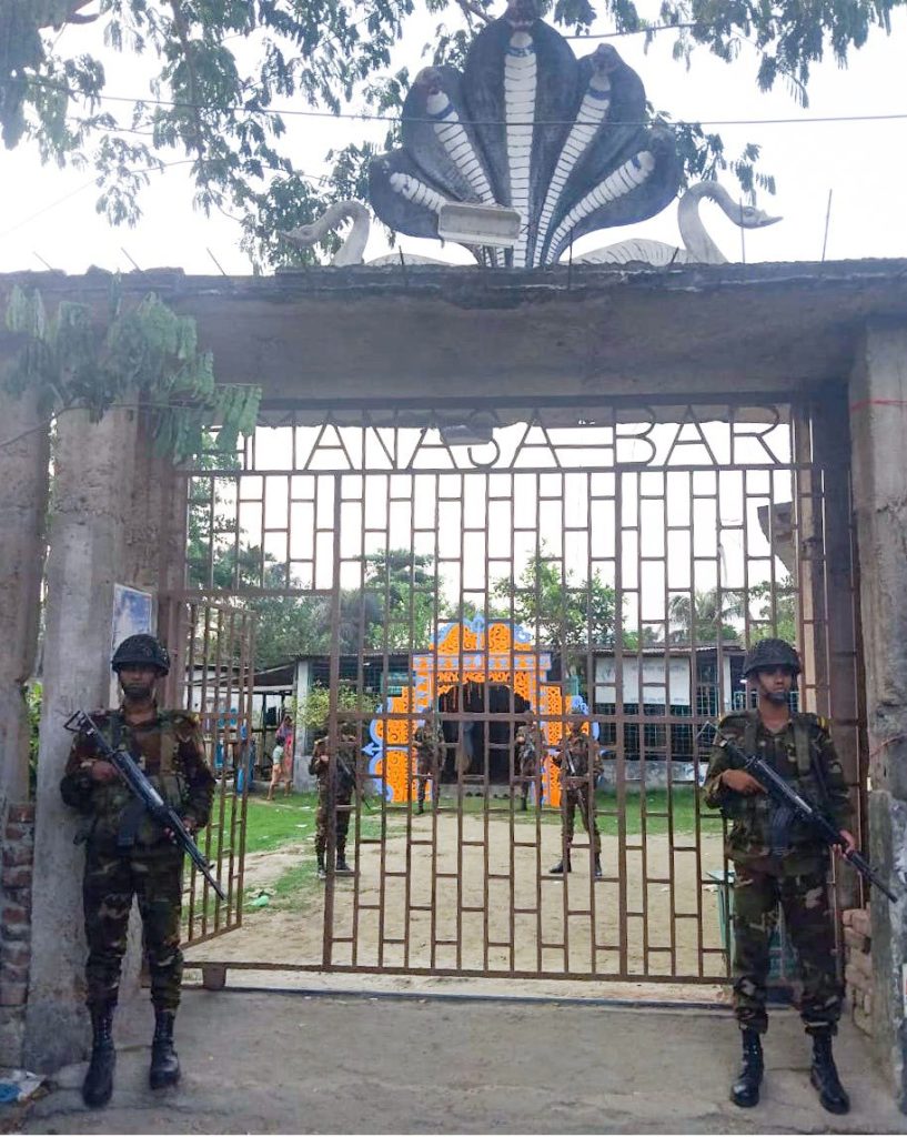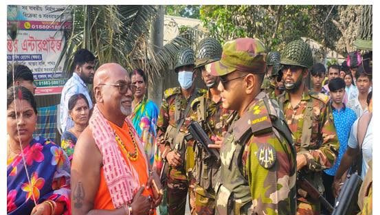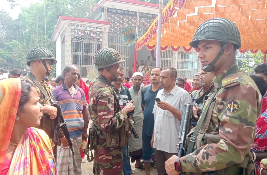 বরিশাল অঞ্চলে সনাতন ধর্মাবলম্বীদের বাসন্তী পূজা উদযাপন উপলক্ষে সার্বিক নিরাপত্তা ব্যবস্থা নিশ্চিতকল্পে ৭ পদাতিক ডিভিশনের মোতায়েনরত সেনাসদস্যরা দায়িত্ব পালন করেন