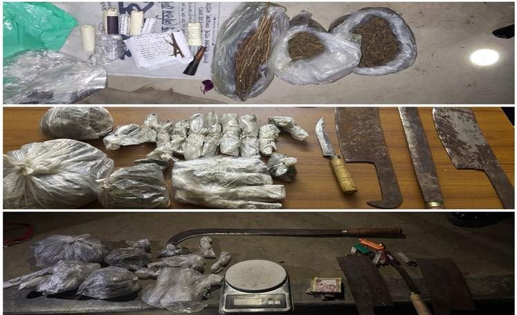 ১১ পদাতিক ডিভিশনের দ্বায়িত্বপুর্ন এলাকা নাটোরে উদ্ধারকৃত মাদক ও ধারালো দেশী অস্ত্রসমূহ