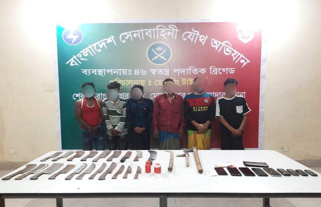 ৪৬ স্বতন্ত্র পদাতিক ব্রিগেড এর অধীনস্থ ইউনিট কর্তৃক শ্যামলী হাউজিং, আদাবর হতে কব্জিকাটা আনোয়ার এর গ্রুপের ০৬ জন সদস্যকে গ্রেফতার করা হয়
