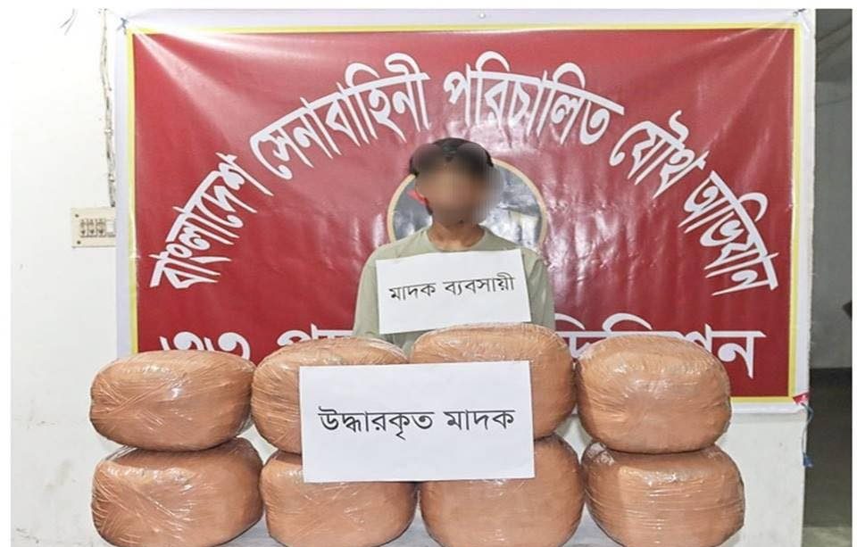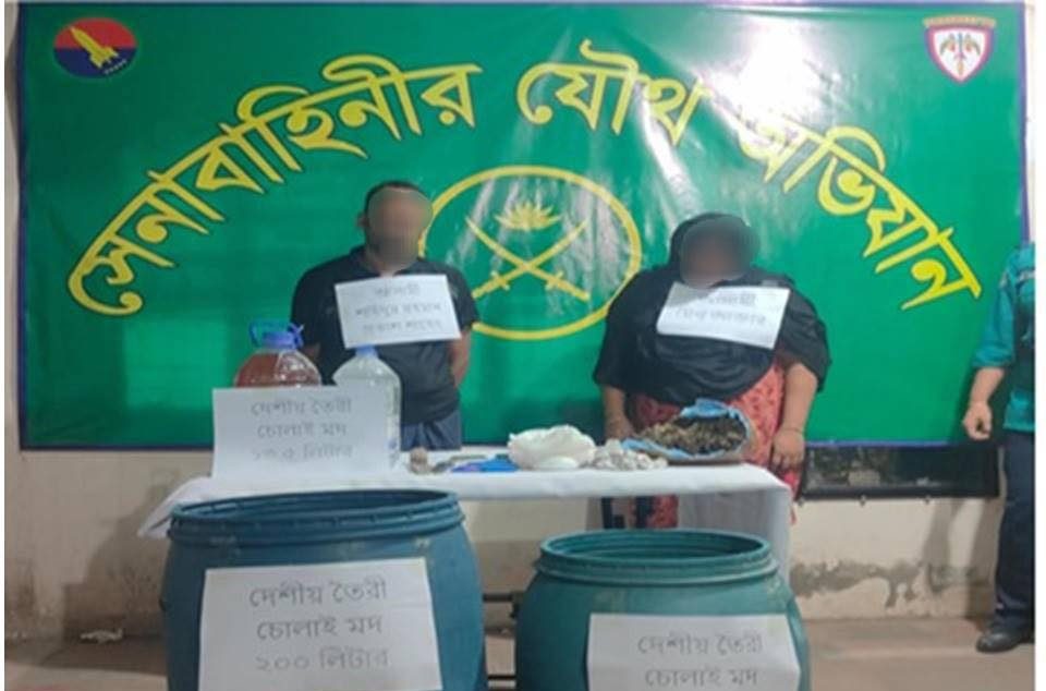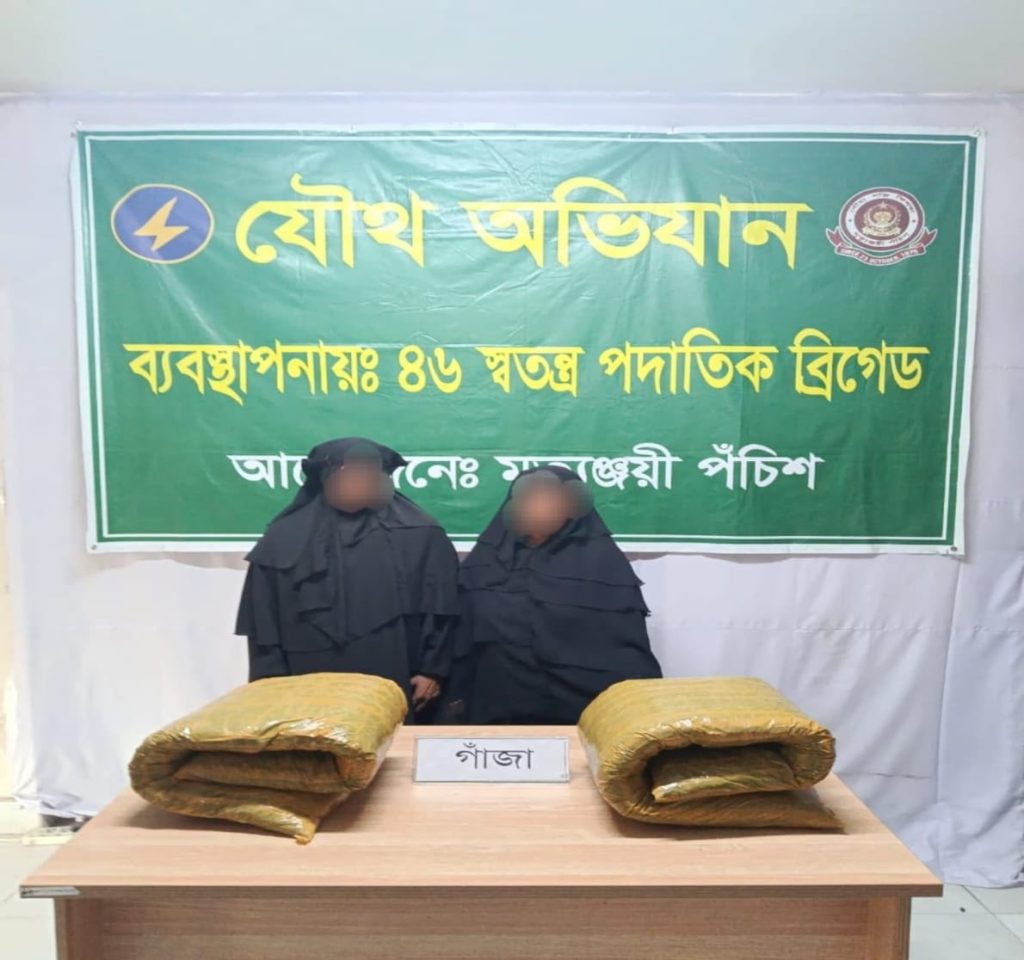 ৪৬ স্বতন্ত্র পদাতিক ব্রিগেড এর অধীনস্থ ইউনিট কর্তৃক পশ্চিম নাখালপাড়া এলাকা হতে ৯.৬ কেজি গাজাসহ দুই মহিলা মাদক কারবারীকে গ্রেফতার করা হয়