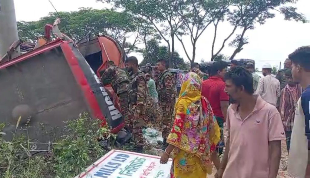 দূর্ঘটনা কবলিত বাসে আটকা পড়া যাত্রীদের উদ্ধার করছে ৯ পদাতিক ডিভিশনের টহল দল