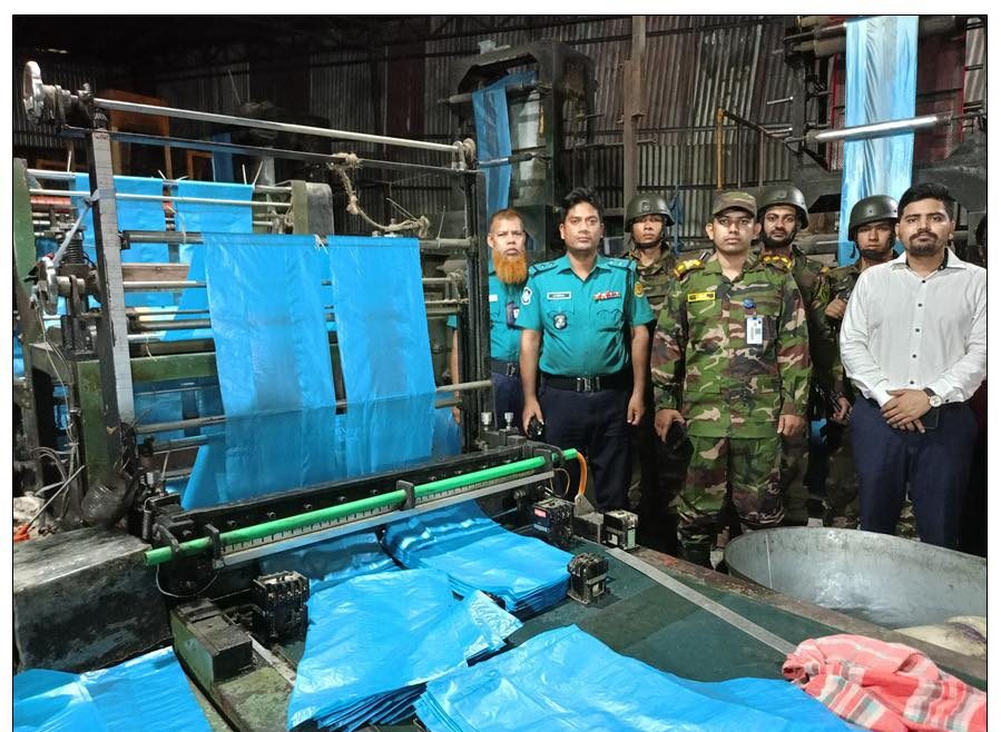 ৮৬ স্বতন্ত্র সিগন্যাল ব্রিগেড এর অভিযানে বালুঘাট এলাকায় নিষিদ্ধ পলিথিন কারখানা সিলগালা করেন পরিবেশ অধিদপ্তরের ম্যাজিস্ট্রেট
