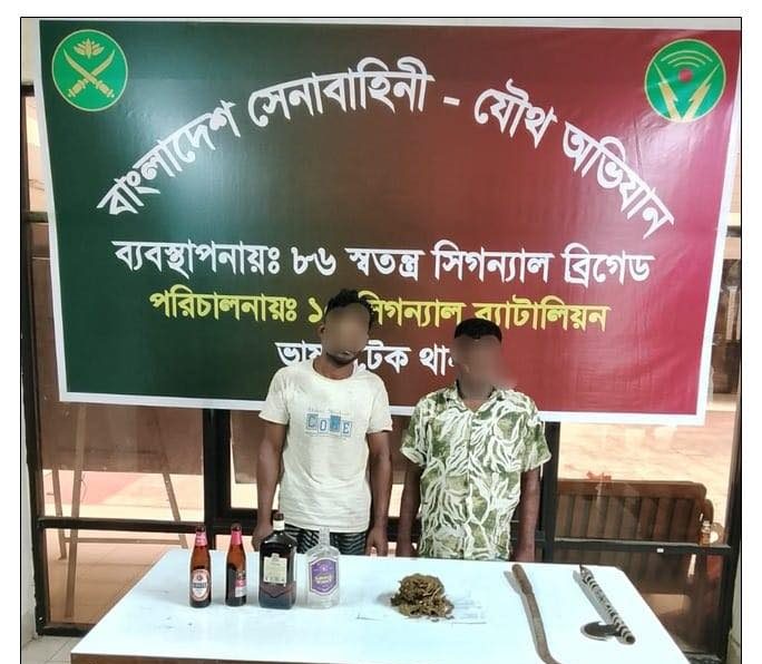 ৮৬ স্বতন্ত্র সিগন্যাল ব্রিগেড কর্তৃক ভাষানটেক ধামালকোট বস্তিতে অভিযান চালিয়ে মাদক ব্যবসায়ী আটক