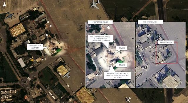সামরিক বিমান ঘাটির রানওয়ের মৌলিক স্তর পর্যন্ত ব্যাপক ক্ষতিগ্রস্ত হয়েছে, যা দীর্ঘমেয়াদে কার্যক্রম ব্যাহত করবে।