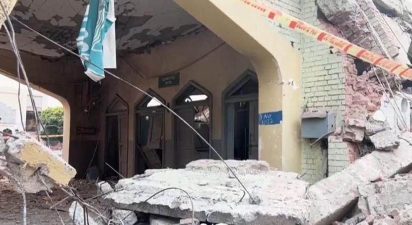 – প্রারম্ভিক সতর্কতা ব্যবস্থা বা মেরামতের কাজে ব্যবহৃত একটি হ্যাঙ্গারে গুরুতর কাঠামোগত ক্ষয়ক্ষতি হয়েছে এবং ধ্বংসাবশেষ ছড়িয়ে রয়েছে।